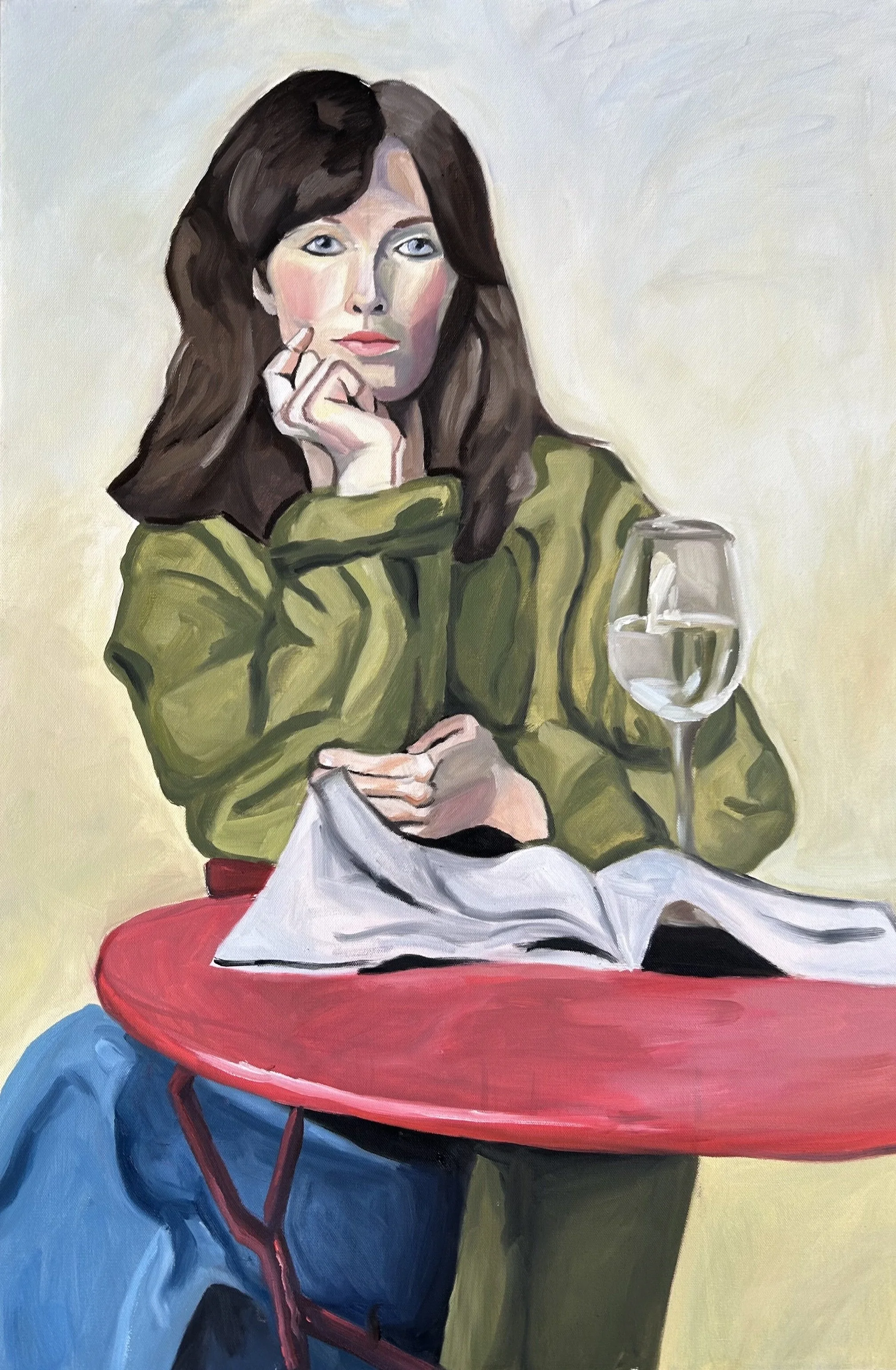 Portrait of Elizabeth, Pensive and Posing, 2023, 2'x4'. oil on canvas